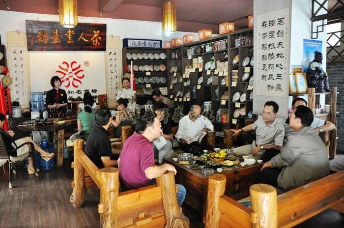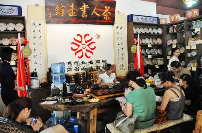 云南普洱茶协会会长助理、副秘书长、葳盛茶业有限公司董事长、总经理张明春向记者介绍说:“葳盛茶业最早是开发了一套名为‘茶•人•书•壶•馆’的系列套装茶。这套茶无论茶品品质及文化内涵,均为上乘制作,茶性、口感都独具特色魅力,被广州首届茶叶购物节组委会评为金奖。随后葳盛又将‘茶人书壶馆’作为下属分公司的茶店店名,在昆明西区、北区、新螺狮湾、丽江、康乐茶文化城、郑州等地设立了分公司【茶人书壶馆】,为当地企事业单位、住户及茶友提供了休憩、品茗、鉴赏、交流、商务、聚会的静谧空间,受到了社会和群众的青睐。