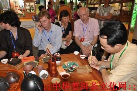 大会期间几个晚上,在“思味源普洱府”古朴而典雅的茶楼里,主人江枫先生热情地拿出了80年代、90年代及2008年的“思味源”生、熟普洱茶请外宾们品尝,并为外国茶友展示讲解了精深的茶艺茶道。俄罗斯、意大利、美国等代表团对云南和昆明葳盛“思味源普洱茶”及云南民族茶文化给予了高度评价和赞赏。云南著名普洱茶文化专家蒋文中教授和张明春老师还为俄罗斯、意大利及美国代表团团员们系统地介绍了普洱茶的历史文化,让外国茶友们通过进一步了解中国悠远的茶文化,加深了对彼此的理解和尊重。外国茶友纷纷表示希望今后有机会到云南进一步考察并建立普洱茶的贸易。