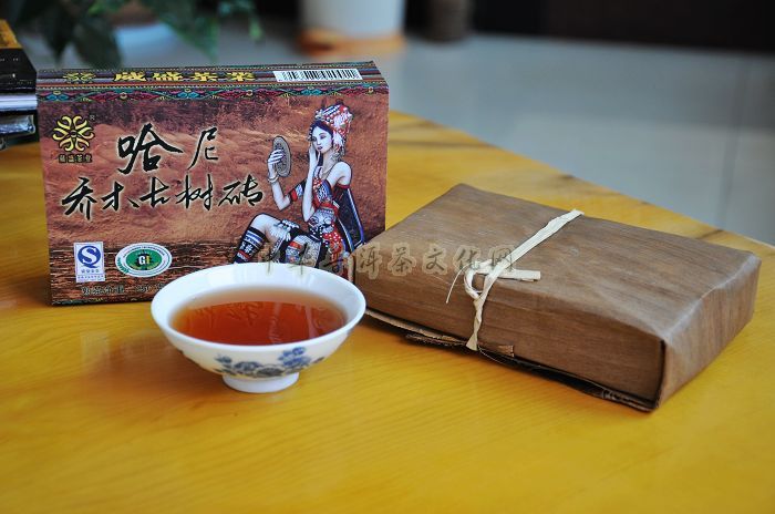 哈尼乔木古树砖档案:葳盛茶业2004年采用昆明茶厂7581传统的熟茶制作工艺及制茶经验精心制作而成。该茶采用无量山乔木古树茶菁制成。重250克、长14cm、宽9cm、厚3cm,为乔木大叶古树茶砖,用质朴的竹笋壳包装,茶砖茶面呈深褐色,色泽均匀、洁净,茶身结实,整体砖形规矩,底部有特用铜模压制的乳钉,汤色酒红、清澈油亮,绝非一般色深褐红的普通茶品可比拟。其色、香、味、韵、陈方面综合表现较好。色:红浓明亮;香:枣香;味:滋味醇厚甘甜;韵:悠长柔顺;陈:有陈香感。该茶品2004年问世,备受社会各界的青睐。