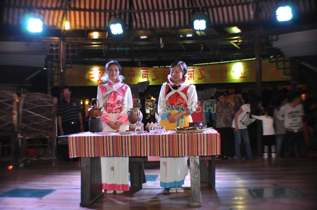 纳西族聚居于滇西北高原的玉龙雪山和金沙江、澜沧江、雅砻江三江纵横的高寒山区,用茶和酒冲泡调和而成的“龙虎斗”茶,具有香高味酽的特点和提神、解表、散寒的功效,备受纳西族人民的喜爱。