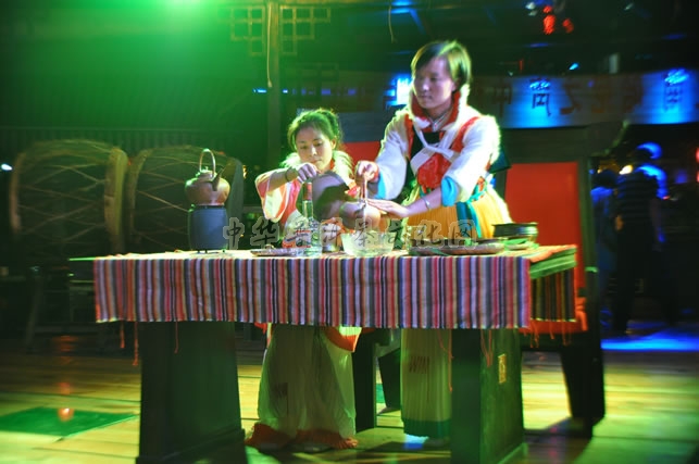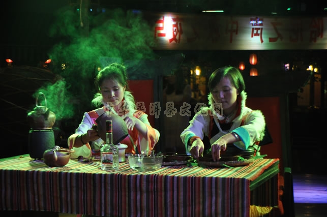 葳盛茶艺师表演纳西族传统茶艺——龙虎斗