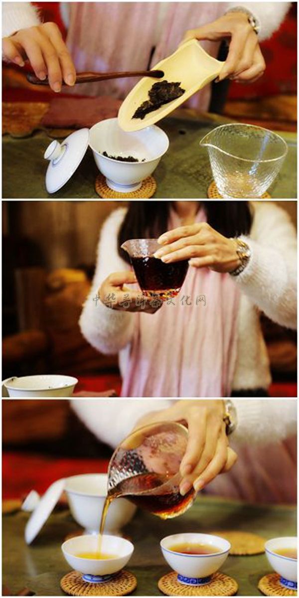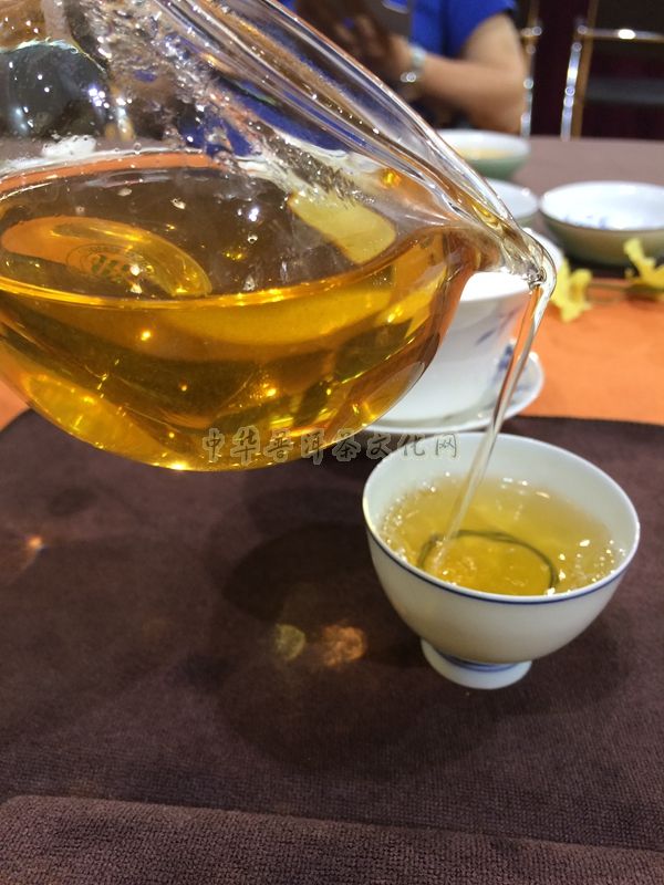 最后一道当然就是冲泡,有了好茶,自然要有好的茶器,“茶为母,器为父”,冲出来的茶就是孩子,冲泡的手艺也很重要,这个需要长年累月的冲泡经验。 观察茶汤颜色,汤色清亮,明黄,这有些类似于平淡如水的描述。其实在泡茶的过程中,汤色的构成茶叶与水的影响各能占到50%,如果水质较硬,泡出来的汤色就会变的黯淡,灰蒙蒙的,水质较软则相反。回到汤色上来,不要以为汤色平淡如水味道就真的和白开水一样,在茶汤经过你的嘴唇、牙齿、舌尖、两颊、喉咙,甚至食道、胃部之后,所过之处皆能体察,毛孔也会随之张开,放松,周身暖洋洋的。茶之韵味霸道十足,茶物质丰富到能在你舌尖上凝久不散,反复嚼品。瞬间能体会到清、润、柔等特点。