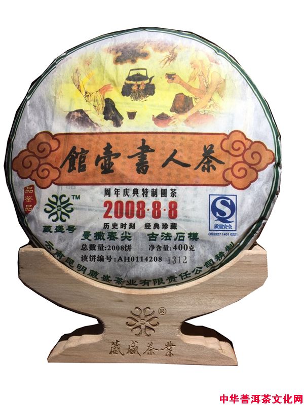 2008年〖茶人书壶馆〗,是为纪念2008年第29届北京奥运会而特制的精品普洱茶,同时也是为纪念茶人书壶馆开业一周年。