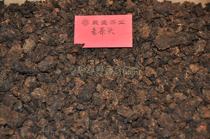 特点:熟茶发酵过程中会有结块的团块茶,一般嫩度高、体型小、条索紧结的茶,潮水后,茶叶柔软、茶体之间透气性差,发酵中容易结成团块,就形成了茶头。一般渥一堆熟茶20吨,茶头只有100-300公斤。口感厚、滑,茶汤入口比较顺滑,口感醇厚。茶汤入口陈香就慢慢的满口散开,特别是到喉部茶汤似乎更加顺滑。茶头比各等级的散茶发酵得更重一些,极其耐泡,甜度和亮度非常高,越喝越浓,还有淡淡的枣香味,越喝枣香味越浓,饮到最后的时候甘韵生津。一般能泡30-40泡左右,且茶气十足。