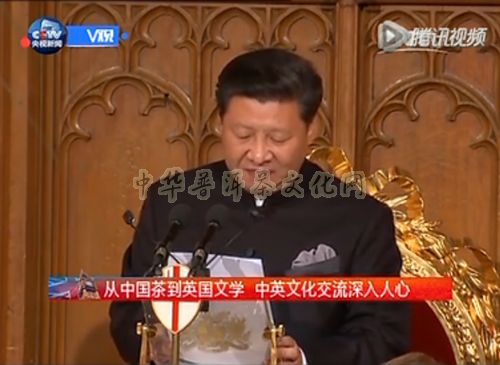 2015年10月21日,习大大在伦敦金融城的市长晚宴上演讲,提及茶叶在中英两国的历史性、传播性。习近平主席在致辞中说到:“中国是茶的故乡,英国则将下午茶的文化发挥到极致...这一切,印证了中英友好已深入人心,两国关系长远发展有着坚实的民意和社会基础。”