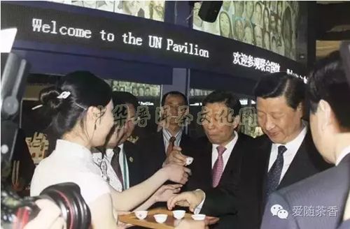 【在世博】2010年4月30日,中央政治局常委、国家副主席习大大在联合国助理秘书长、上海世博会联合国展区总代表的陪同下来到联合国关内的中国世博十大名茶茶叶展示台前,很高兴地品尝了中国世博十大名茶。