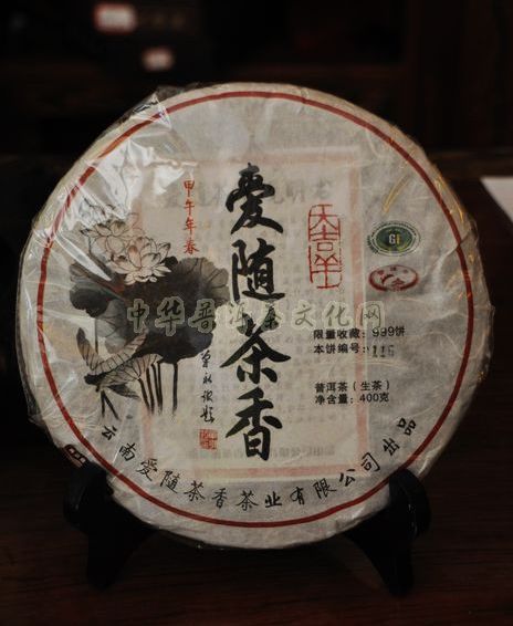 “爱随茶香飘万里,情系茗韵传千秋”。云南爱随茶香茶业有限公司继2012年及2013年推出集品质、品味、品位于一体的经典爱随茶香之后,为传承华夏历史,弘扬普洱茶文化,汲纳吉祥民族文化之精髓,使其内涵再现于世。于盛世甲午年春推出中国吉祥文化与普洱茶文化的完美结合之尚品【大吉祥 爱随茶香】,寓意吉祥如意,好运连连,爱随茶而香,人随缘而交。