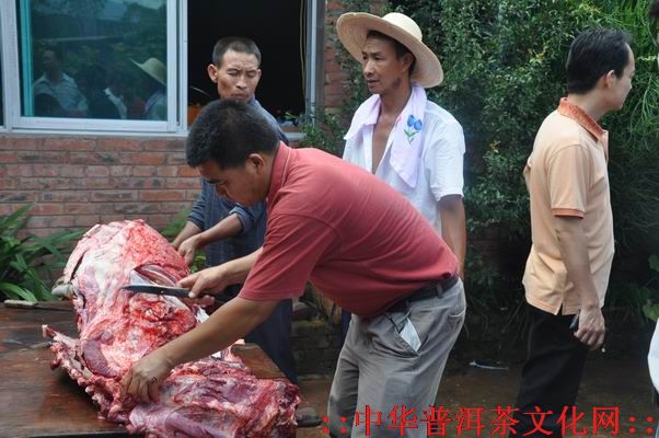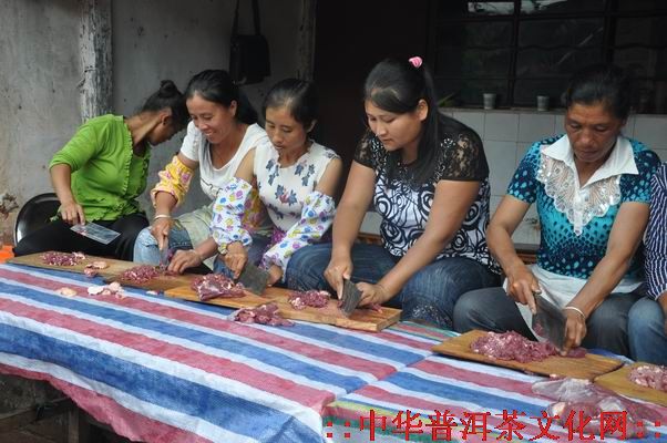 走进哈尼寨,呈现在我们面前的无论是大大小小还是老老少少都忙的不亦乐乎!哈尼妇女们聚在一起,摆成一字型,正在为这喜庆的日子准备丰盛的晚餐。哈尼小伙们则把家家户户的桌椅板凳搬到一起,哈尼壮男则杀鸡宰牛,老人们脸上堆满了笑容,在一边休闲的拉家常。不时还有哈尼小女孩、小男孩跑来跑去。