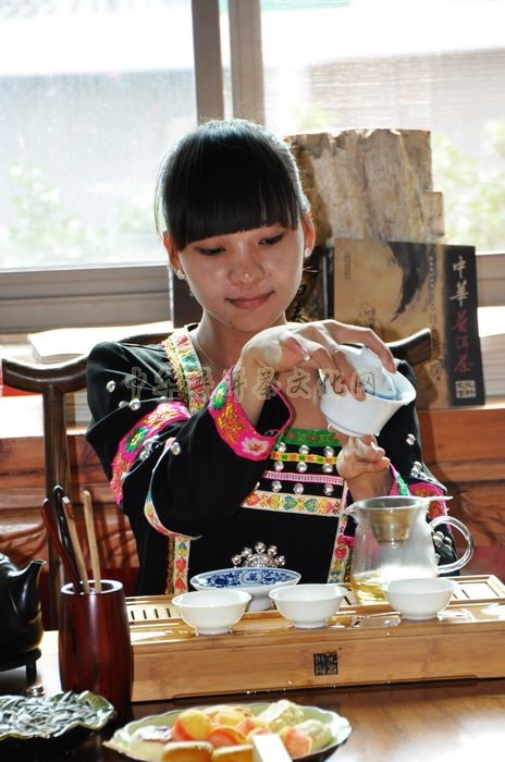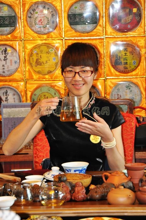 “哈尼公主茶清醇,葳盛普洱陈韵香”, “哈尼公主茶”是葳盛自2004年研发2005年上市,至今每年都限量推出的一款特色民族风味普洱茶。哈尼公主茶采用澜沧江流域原始深山树龄在200年以上的云南大叶种乔木古树茶菁为原料,茶菁为清明前采摘的第一批春茶。该茶滋味入口即甜,香气悠长,醇厚回甘生津,是葳盛印象和民族茶文化的代表,也是云南较有影响的现代普洱茶品牌,并被云南普洱茶协会指定为第一饼普洱茶证明商标样榜茶,并且还获得过多个茶博会的奖项。好茶才会被人所喜爱,才会激发制茶人坚持不懈的研究,开发新的好的产品。今年的哈尼公主茶和往年的比起来又具有新的迷人风味。葳盛哈尼族茶艺师表演了哈尼公主茶的冲泡,一举一动都是那么优雅、柔美,人们仿佛看到了羞涩甜润的哈尼公主。那有人就会问,表演得近乎完美,每一个步骤都让人陶醉,最后的茶汤又会如何呢?茶友们频频的点头、连连的赞叹早已揭晓了答案。
