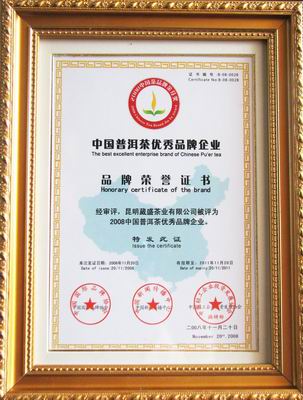 昆明葳盛茶业有限责任公司以自身的实力和影响力成为2008年中国茶品牌(普洱)“金芽奖”及“陆羽奖”评选品牌之一,在茶品质、品牌知名度、市场占有率、品牌影响力、茶文化等都赢得了组委会审评专家组的认可和好评。组委会审评专家组(茶文化、茶质量、茶营销)通过综合性指标对参评的企业品牌进行终评,最后评出: