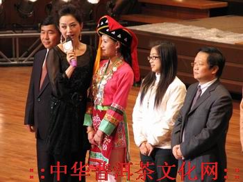 图为葳盛茶艺师引团(身着民族服装)在广州星海音乐厅颁奖现场