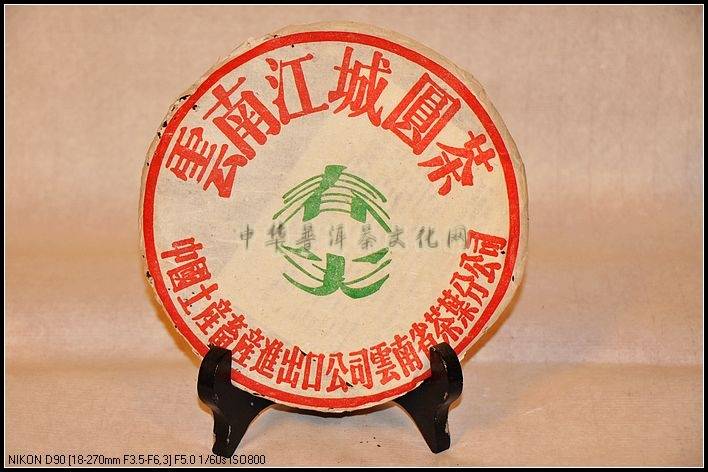 特点: 江城圆茶和龙马同庆号、敬昌号圆茶(小内飞)一起于香港金山茶楼被发现而售出的,其内飞也颇具特色,只有红色字体的江城圆茶这4个字及白色背景组成,这在老字号茶品中极为少见。该款江城圆茶具有典型的乔木大叶种普洱茶的特色,选料精美,制作传统,随着时间的积累,此款茶的品质和价值都在不断提升,极具收藏和品饮价值。