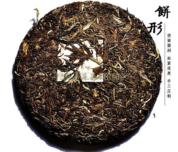 外形:饼形周正,收边工艺较佳,条索均匀清晰,松紧适中。