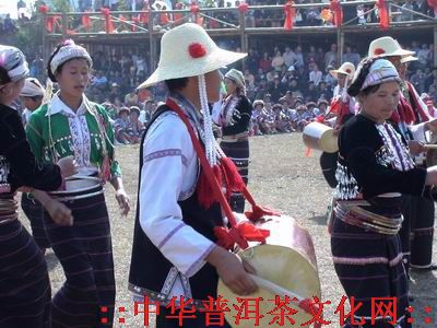 水鼓舞:水鼓舞是德昂族所独有的,其步法,形式基本与象鼓舞相同,击敲时把鼓绳挂在脖子上,水鼓抱在胸前,右手持锤击大头鼓面,左手以掌拍小头鼓面,两手相互配合,击出节秦。