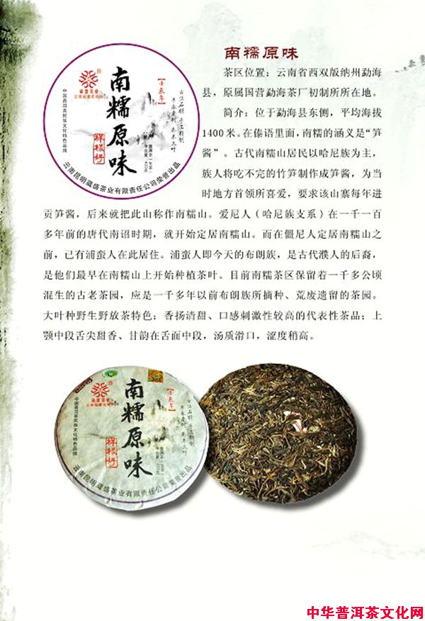 南糯山是西双版纳历史最久、面积最大的古茶区,南糯山现存古茶园万2千亩,茶园中300年以上的古茶树占了大多数,所有的古茶树无论大小,无论年轮,都长得枝叶繁茂,极少有枝枯叶萎的现象。