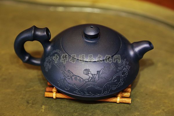 特点:泥色特异,青蓝色中略泛绿光,清秀独特;稍一泡养,色调更形稳实,温润透明,变化甚巨,玩赏深具成就感。