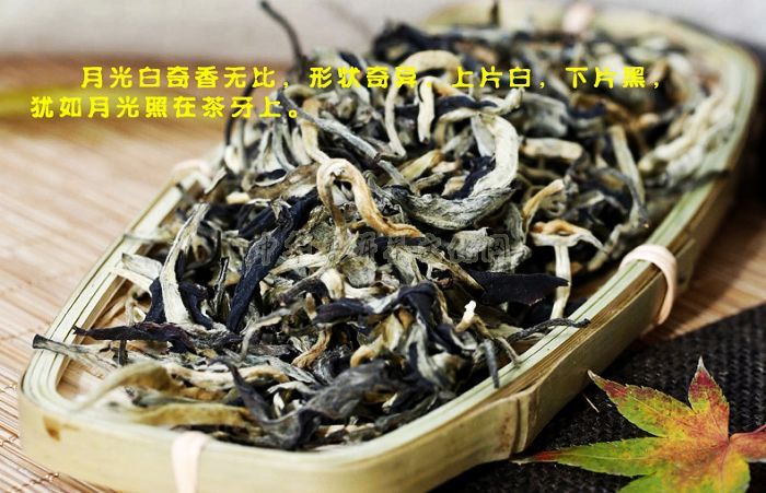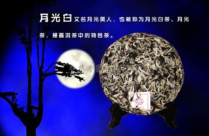 月光白又名月光美人,也被称为月光白茶、月光茶,是普洱茶中的特色茶。此茶主产于云南省思茅地区,其采摘手法独特,须在黑暗『月光下』下制作,每批茶叶的粗制要在5-7天内完成。其名来历说法不一,一种说法是:此茶采特殊制作工艺,制成的茶,叶面呈黑色,叶背呈白色,黑白相间,叶芽显毫白亮像一轮弯弯的月亮,一芽二叶整体看起来就象黑夜中的月亮,故得名“月光白”;另一种说法是:此茶在夜里,就着明月的光亮,采摘嫩芽为原料,并且从采收到加工完成,均不能见阳光,而仅在月光下慢慢晾干,且采树的均为当地美貌年轻少女,故得名“月光美人”。