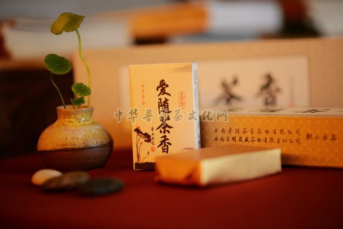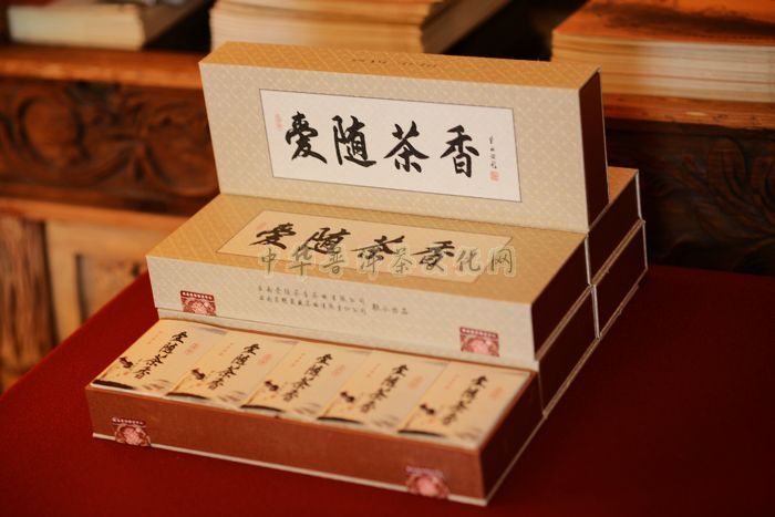 “爱随茶香飘万里,情系茗韵传千秋”。云南爱随茶香茶业有限公司近年来不断推出集品质、品味于一体的经典爱随茶香佳茗之后,为彰显品位、时尚、健康的茶生活方式,内敛至尚,豁达儒雅。于盛世甲午年春推出茶文化与书法文化的完美结合之尚品【大吉祥  爱随茶香】。