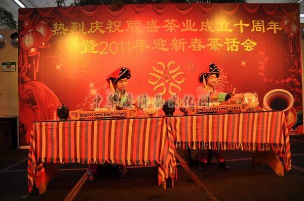 伴着节日的气氛,来自社会各界朋友及不远千里而来的省外茶友共200多人欢聚在一起,热闹非凡,为庆祝葳盛茶业成立十周年,公司精心准备了许多丰富多彩的节目,整个活动高潮迭起,公司精心准备了十周年中国普洱大叶青饼,为前来参加活动的朋友表示感谢与节日的问候,不仅如此,现场抽奖、民族特色的茶艺表演、品鉴五十年代萬字老散茶等。