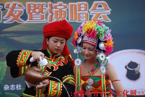 跨入德昂山寨人们可以处处感受到这个古老民族与茶的特殊感情。首先是家家户户都在房前屋后栽满了茶树,接下来是无论客人进入谁家都会受到以茶为礼的热情接待。客人光临,不是递酒,而是敬茶,有“说一句话,喝一盅茶”的习俗人。这茶水,是主人事先准备好的,一般均用大土罐炖在火塘边,随喝随沏,这叫“迎客茶”。遇上亲戚或好友来访,则用一种特殊的方式敬茶。这茶是主人临时现采摘的新茶,主人先将锅盖置于火塘的三角架上然后三番五次地烘烤、揉搓,直到发出香味。稍凉片刻,又用手抓一小撮放进小土茶罐里,继续烘烤到茶叶发黄,即用滚烫的开水冲入罐里,待水泡全消,稍作烘烤,尔后,再倒给客人喝,直到喝完。主人只能喝第二道,表示以诚相待,友情长存。这叫“敬客茶”。客人告辞,德昂人仍然以喝茶相送。如送一般客人,便将自家常饮的茶抓一大把置于大土茶罐里,稍烘片刻,待喷出香味,即冲水继续烧开,然后,按人头每人喝一碗。边碰碗边喝,边喝边说道别的话,如送贵客,则要喝竹筒茶。竹筒是现砍的嫩竹,竹筒砍好后,即取精心保存的春茶放入竹筒里,灌上清凉的水,便在火上烘烤。直烤到竹皮发黄,飘出醇香的茶味,然后轮流喝一口,直到喝完为止,意即让友谊像竹子一样,一节更比一节高。