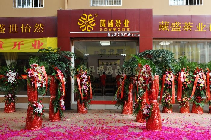 葳盛茶业前卫茶文化广场形象旗舰店于8月29日下午14:30隆重开业!参加开业活动的有茶界行业的相关领导、茶人茶友及省外爱茶人士等。人们可现场亲自压制个性普洱茶及红酒品鉴等多项精彩活动。各界茶人茶友及嘉宾近百人光临开业仪式,人们兴高采烈,喜气洋洋。云南省著名商标企业葳盛茶业成立于2004年,于2000年在位于云南昆明关上宝海公园大门旁新创了一个集室内外为一体的质朴、典雅、充满着茶文化气息的中式茶艺馆,自此翻开了以茶为伴、以茶为缘的现代都市中的休闲论道的一页。历经图治,十年磨砺,葳盛茶业公司逐渐发展成为从茶叶原料采摘、初制、加工、开发、精制、品牌销售、茶艺表演、茶艺培训、茶叶鉴赏、茶叶品饮、茶文化交流于一体的综合性茶文化传播公司,现已成为中国普洱茶优秀品牌企业及中国普洱茶民族文化特色品牌,在茶文化传播与普洱茶品鉴中都力求精益求精、至上至诚。自成立以来,相继开设了葳盛茶行;醴水茶屋;西区茶人书壶馆;葳盛普洱府;螺蛳湾茶人书壶馆;丽江茶人书壶馆;北区茶人书壶馆;郑州茶人书壶馆;曲靖茶人书壶馆。葳盛茶业旗下分公司都具有不同的功能,各有特色,各有千秋,可谓葳蕤茶香,盛世怡然。