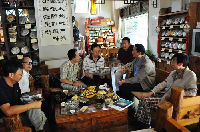 五年的茶—醇香,五年的人—相知,五年的书—博识,五年的馆—情深”。五年的茶人书壶馆在岁月的砥砺中渐渐成长,不畏惧岁月的流逝,虽然时光常常是美好的敌人,但也能成就历久弥香的经典,就如普洱茶,越陈越香。在葳盛茶业西区茶人书壶馆五岁生日之际,同时也是《云南普洱茶 春•夏•秋•冬》连续出版八周年之际,为此,葳盛茶业有限责任公司特携全国首家普洱茶专业品牌出版物《云南普洱茶 春•夏•秋•冬》一同举办庆祝活动。活动当天,云南省普洱茶协会会长、中国茶文化研究中心主任、省人大常委会原常务副主任张宝三,昆明民族茶文化促进会理事长张顺高,云南省科技出版社社长王超超,副社长高亢、郑波、执行主编吴涯,昆明泸州商会常务副会长郭斌、云南省茶业协会培训部主任韦红等有关方面领导及茶人茶友约50人参加了馆庆活动,气氛热烈,欢乐而轻松,并在交流座谈中展望了普洱茶的发展前景。