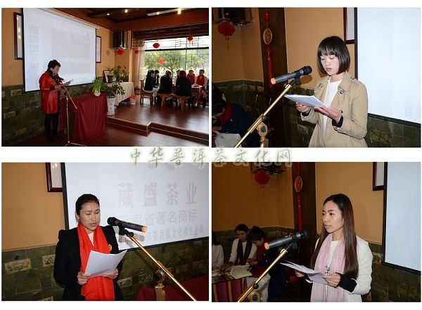 葳盛茶业2014年全体员工年终总结暨2015迎春联谊会于2月8日在“葳盛茶艺馆”现升级为“葳盛茶业茶文化交流中心”举行。活动当日邀请了多位好友共同欢度,他们见证了葳盛的发展历程,也是一如既往的坚强支持着、关爱着葳盛。旗下各个分公司均聚集到一起,包括丽江、玉溪、曲靖、昆明等各地的加盟经销代表,及《爱随茶香》栏目组成员,依次在总结会上致辞发言,总结分析了2014年的发展情况、销售业绩、员工队伍的建设,市场的拓展、文化建设、媒体的运营等综合情况,以及对2015年做出新的计划和打算。葳盛董事长张总做了总结性的发言,至新春贺词。公司为鼓励员工,年终考核中还评选出多个单项奖:最佳营销奖¬、爱岗敬业奖、优质服务奖、优秀员工奖、最佳进步奖,对获奖者进行表彰奖励。