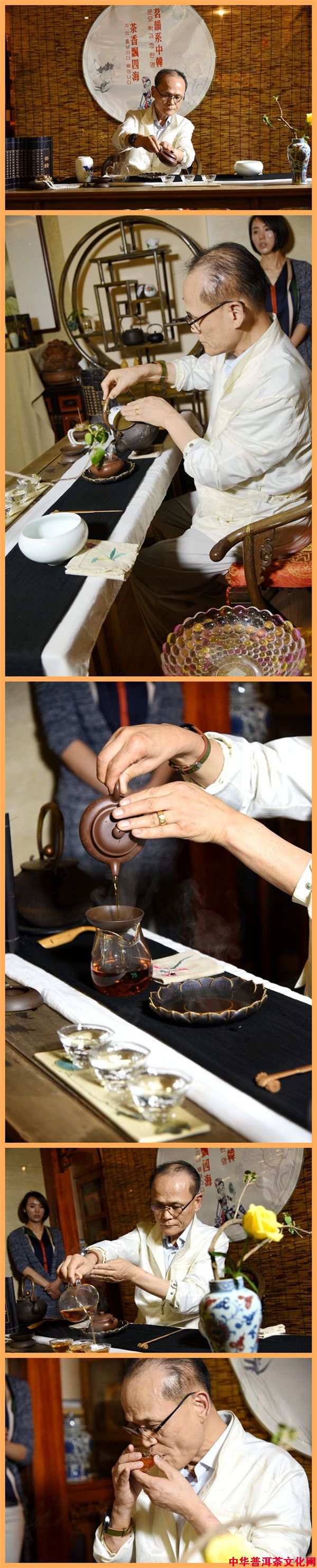 欣赏完禅茶一味的和谐茶道茶艺表演后,漂洋过海而来的韩国友人也不禁想亲自冲泡普洱茶,就冲泡了50年代万子老散茶。