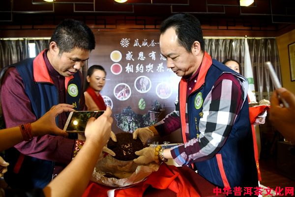 由昆明茶业协会会长,云南省国际商会茶业协会会长刘益成先生与昆明茶业协会常务副会长、葳盛茶业董事长张明春先生共同取样。