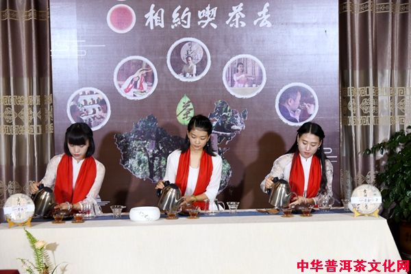 三位优秀茶道艺术师同时冲泡“滇茸”精品普洱生茶