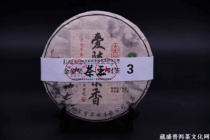 “爱随茶香普洱熟茶”在2016年10月30日举办的首届滇茶杯名茶评比大赛上荣获“茶王”称号。是由著名茶学家、原云南省农科院茶业研究所所长张顺高;云南农业大学茶学系创始人张芳赐;原勐海茶厂厂长、普洱茶终生成就奖获得者邹炳良;中国农科院茶叶研究所副研究员、著名评茶师刘栩;原广东省农科院副院长陈栋;云南农业大学普洱茶学院院长吕才有;云南农业大学普洱茶学院副院长周红杰;原云南省农科院茶业研究所所长、研究院张俊等14位专家通过盲评的方式从云南14个产茶地州选送的427个样品中评出,其中“爱随茶香熟茶”以94.55的最高分折桂,获得滇茶杯评比大赛“茶王”的称号,自此引起了社会各界的高度关注。