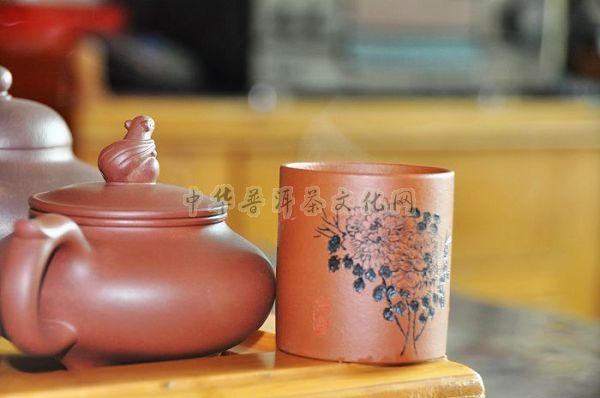 里外不施釉,透气性能好,就具有较强的吸附力。泡茶则香不涣散,味不耽搁。隔夜不馊,久置不会有宿杂气。经久使用内壁积聚“茶锈”,以致空壶注沸水,也会有茶香。