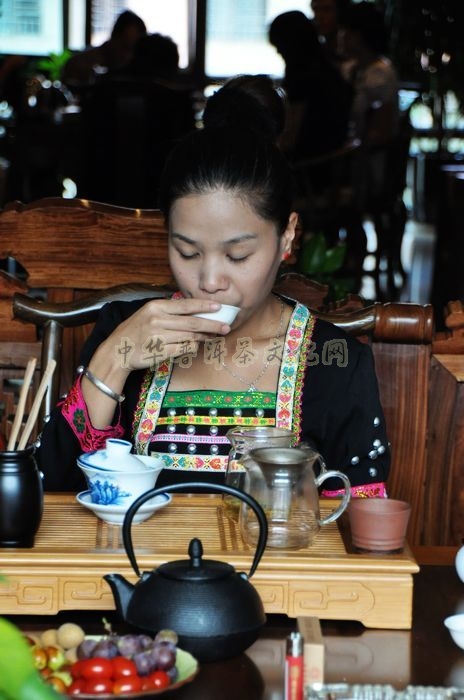 “哈尼公主茶清醇,葳盛普洱陈韵香”, “哈尼公主茶”是葳盛自2004年研发2005年上市,至今每年都限量推出的一款特色民族风味普洱茶。哈尼公主茶采用澜沧江流域原始深山树龄在200年以上的云南大叶种乔木古树茶菁为原料,茶菁为清明前采摘的第一批春茶。该茶滋味入口即甜,香气悠长,醇厚回甘生津,是葳盛印象和民族茶文化的代表,也是云南较有影响的现代普洱茶品牌,并被云南普洱茶协会指定为第一饼普洱茶证明商标样榜茶,并且还获得过多个茶博会的奖项。好茶才会被人所喜爱,才会激发制茶人坚持不懈的研究,开发新的好的产品。今年的哈尼公主茶和往年的比起来又具有新的迷人风味。葳盛哈尼族茶艺师表演了哈尼公主茶的冲泡,一举一动都是那么优雅、柔美,人们仿佛看到了羞涩甜润的哈尼公主。那有人就会问,表演得近乎完美,每一个步骤都让人陶醉,最后的茶汤又会如何呢?茶友们频频的点头、连连的赞叹早已揭晓了答案。