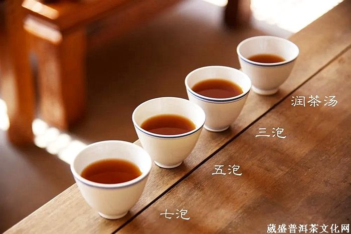 葳盛茶业创始人、国家级制茶高级工程师张明春先生曾说过:鉴别一款熟茶的优劣,要看它的饼面纹路是否清爽、条索是否均匀完整?轻嗅一下,能不能闻到岁月沉淀后散发出的桂圆香、蔗糖香、乃至人参香?看完这些以后,要动手冲泡,观察汤色的透亮度、叶底的鲜活度。入口品尝是滋味平平、还是甜润舒适,可否感受到熟普应有的醇蕴?