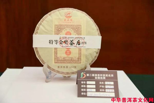 云南西双版纳乘风号茶业有限公司选送的“班章熟茶”荣获特等金奖“茶后”称号。