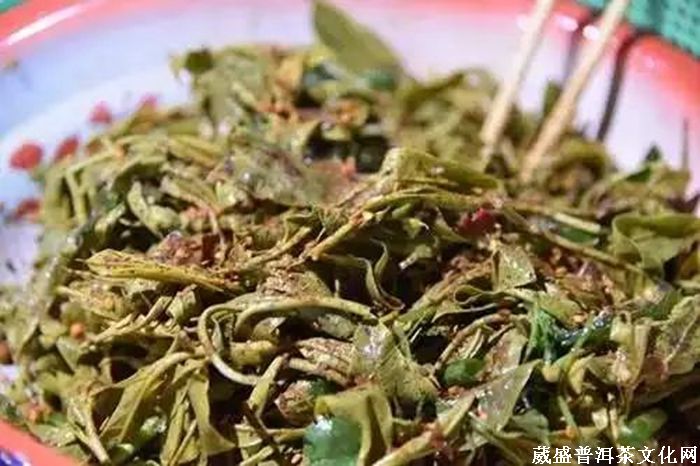 哈尼族的“土锅茶”、“煨酽茶”和“蒸茶”;德昂族、景颇族的“腌茶”;布朗族的“酸茶”;苗族的“菜包茶”和“虫茶”;拉祜族的“竹筒香茶”、“烧茶”、“烤茶”和“糟茶”; 基诺族的“凉拌茶”和“煮茶”;藏族的酥油茶、奶茶……云南少数民族的这些古老茶俗,大多是以新鲜茶叶为原料,把茶叶当作饮料和食物,配以佐料,无所谓茶汤、叶底而一古脑 儿喝下去、吃下去的。